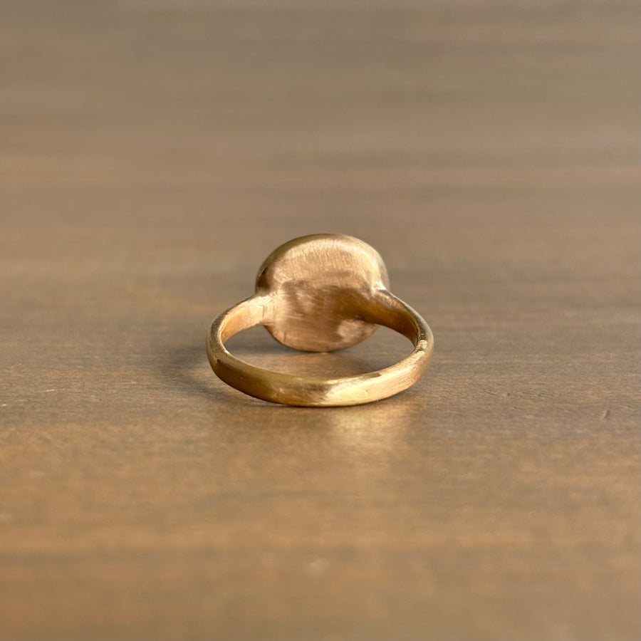The regal gaze of an empress peers out from the face of this ring, cast from an original engraved bronze ring from the late Roman/Byzantine period, approximately 300-600 AD. The 10 karat gold gives a burnished feel to the ring: an homage to the source.
