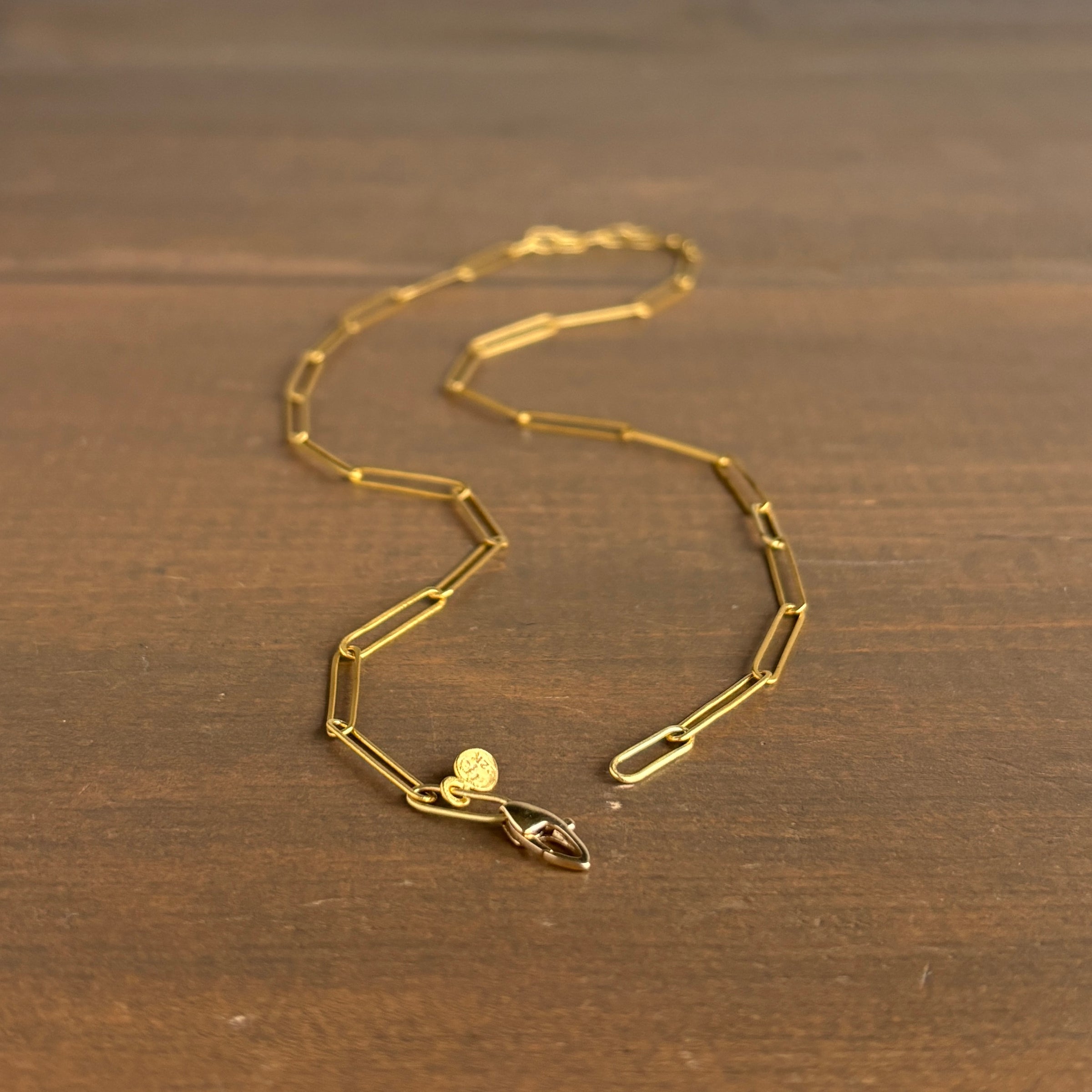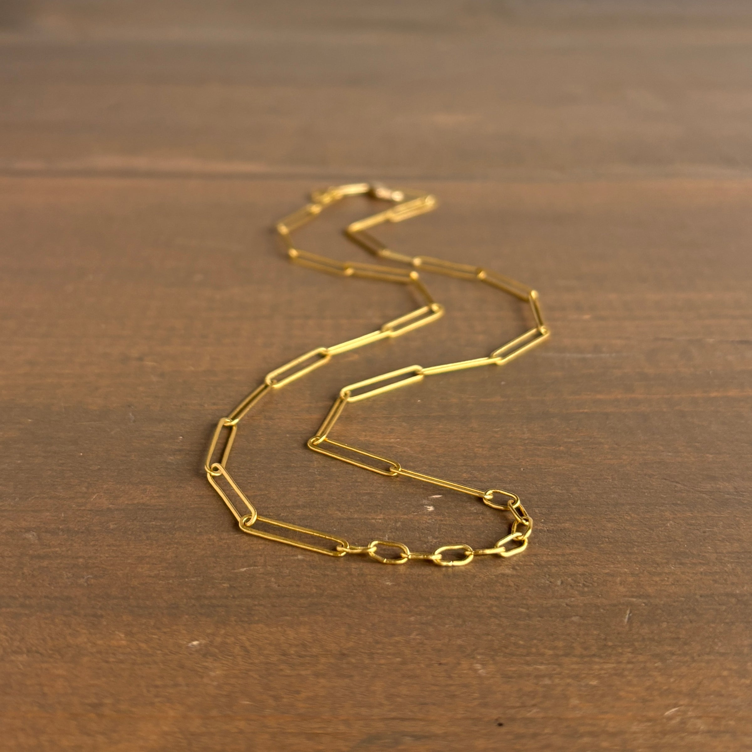 Exquisitely fluid, this link chain is hand-forged in 22k gold. It can be worn on its own, stacked with other necklaces, or can hold pendants.