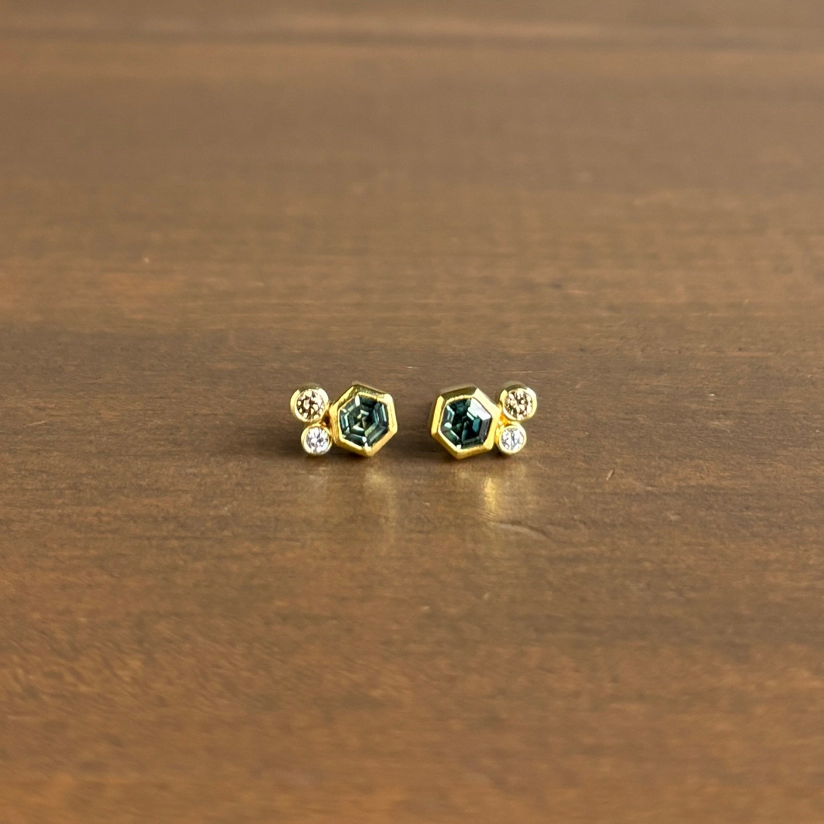 Montana Sapphire & Diamond Cluster Stud Earrings