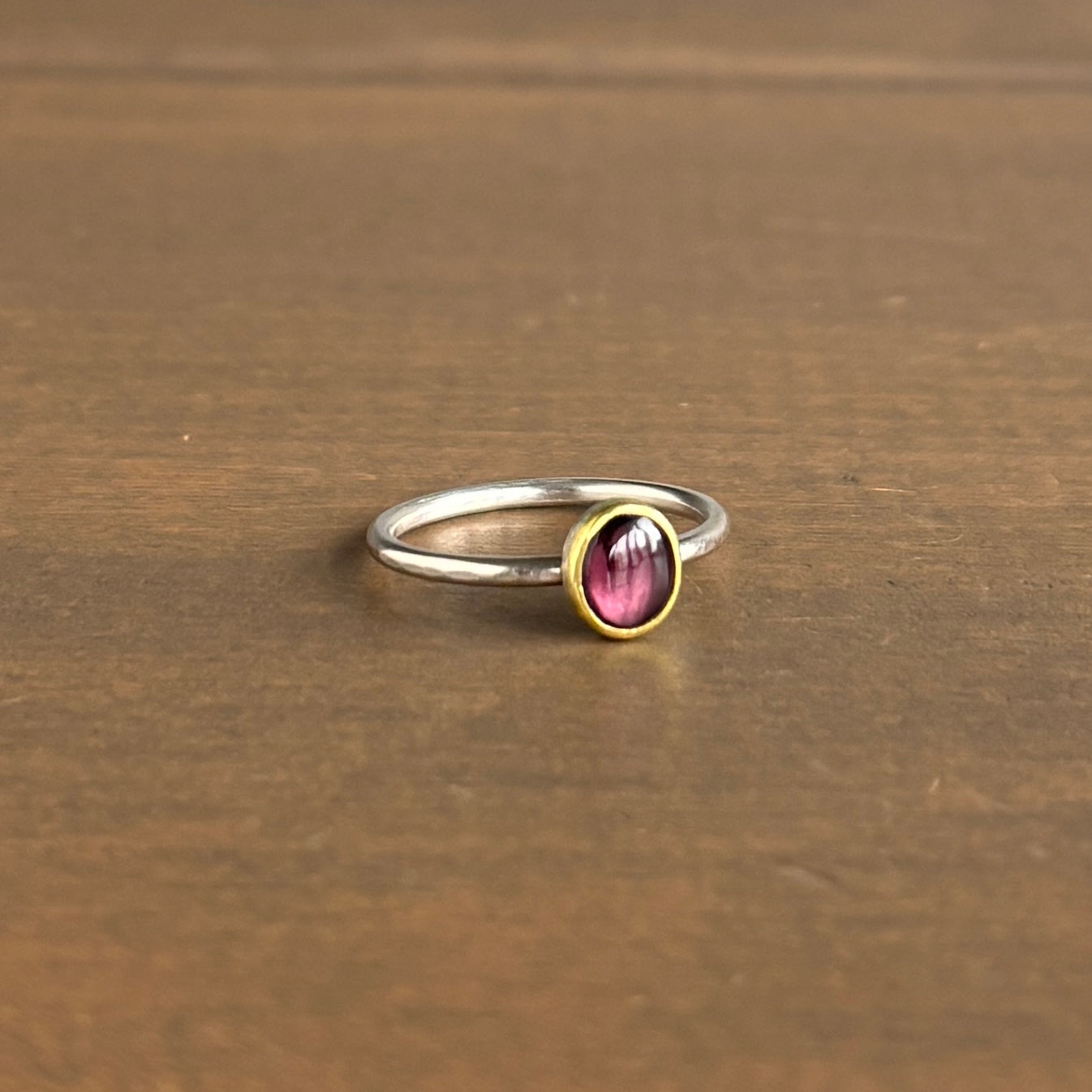 With a lifelong intrigue of gemstones and an interest in mathematics, Sam was lured into the metal arts. Learning to manipulate metal and work with stones has led his work into what it is today. He finds not only the amazing colors gems produce, but also their raw crystal structures, intriguing. The use of this and different color combinations of metal alloys lets him explore designs in shape as well as depths along another plane of vision.