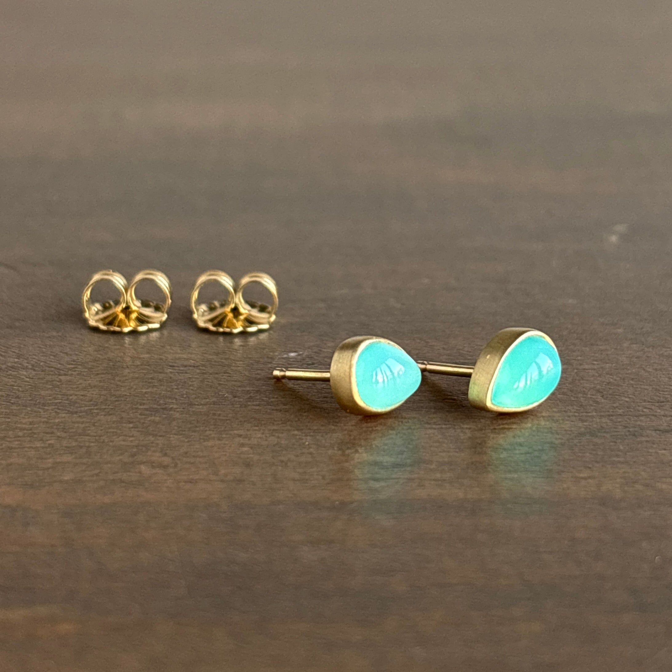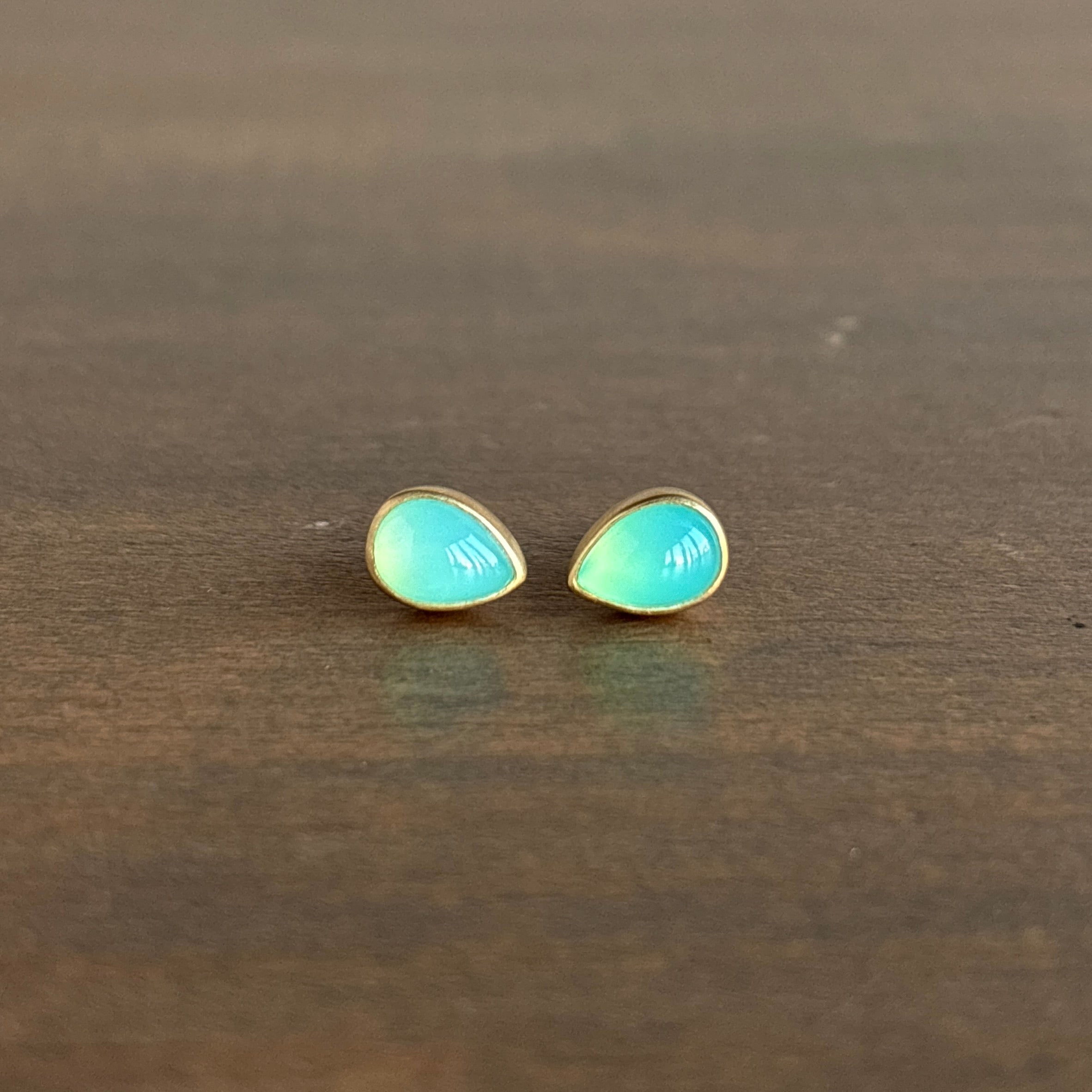 Peruvian Blue Opal Teardrop Stud Earrings