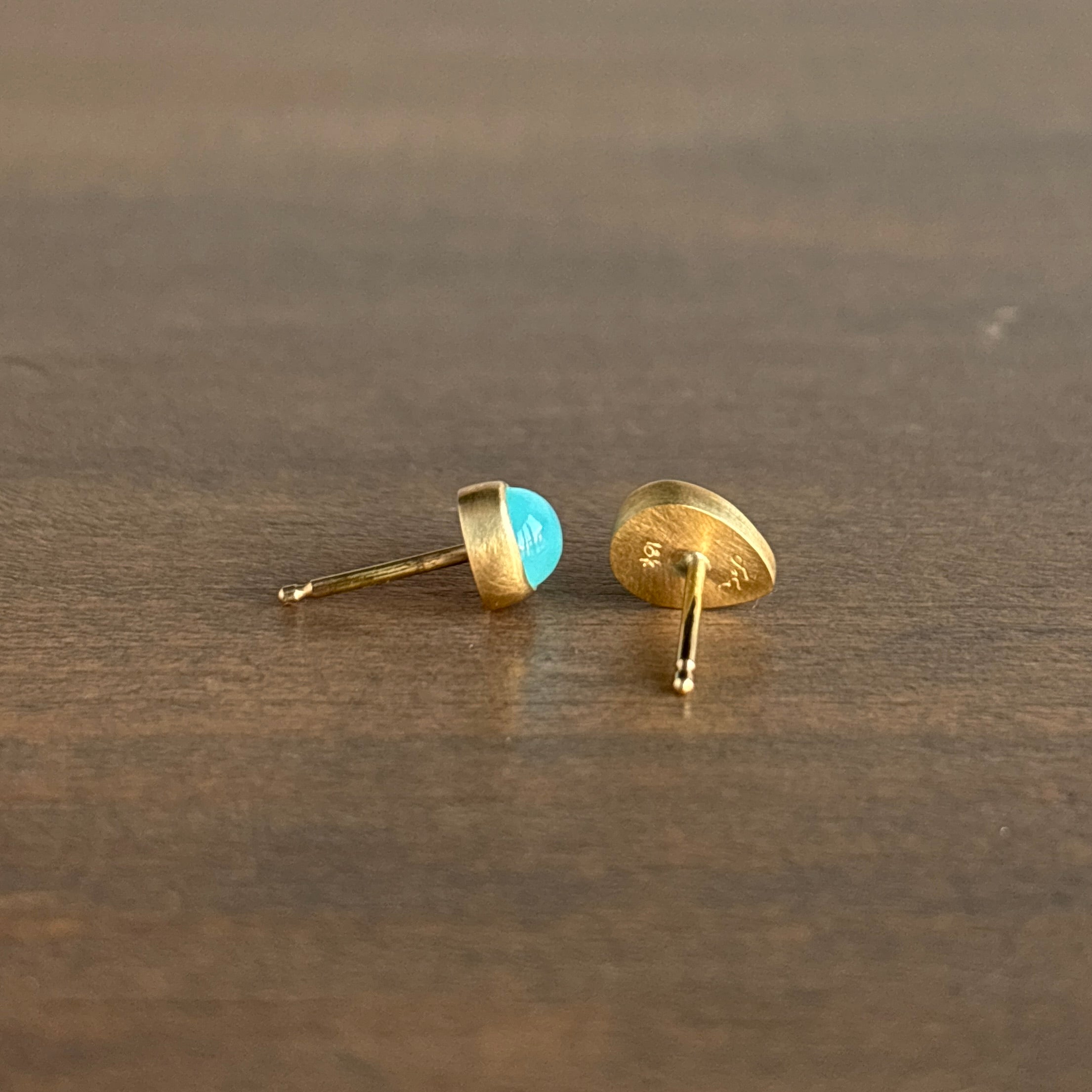 Glowing Peruvian blue opals are embraced by warm yellow gold in this mesmerizing pair.
