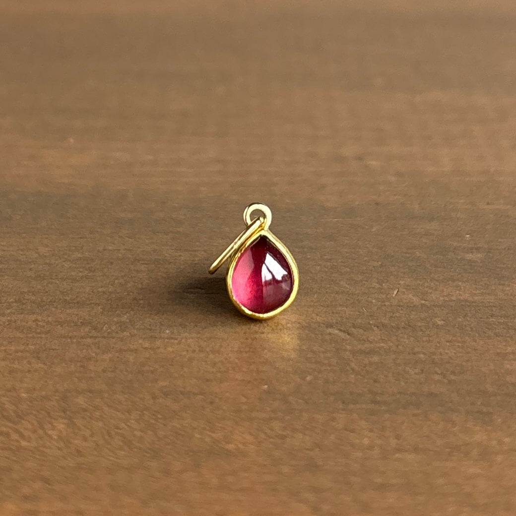 A mellow red garnet fashioned into the shape of a leaf with endless enchantment.