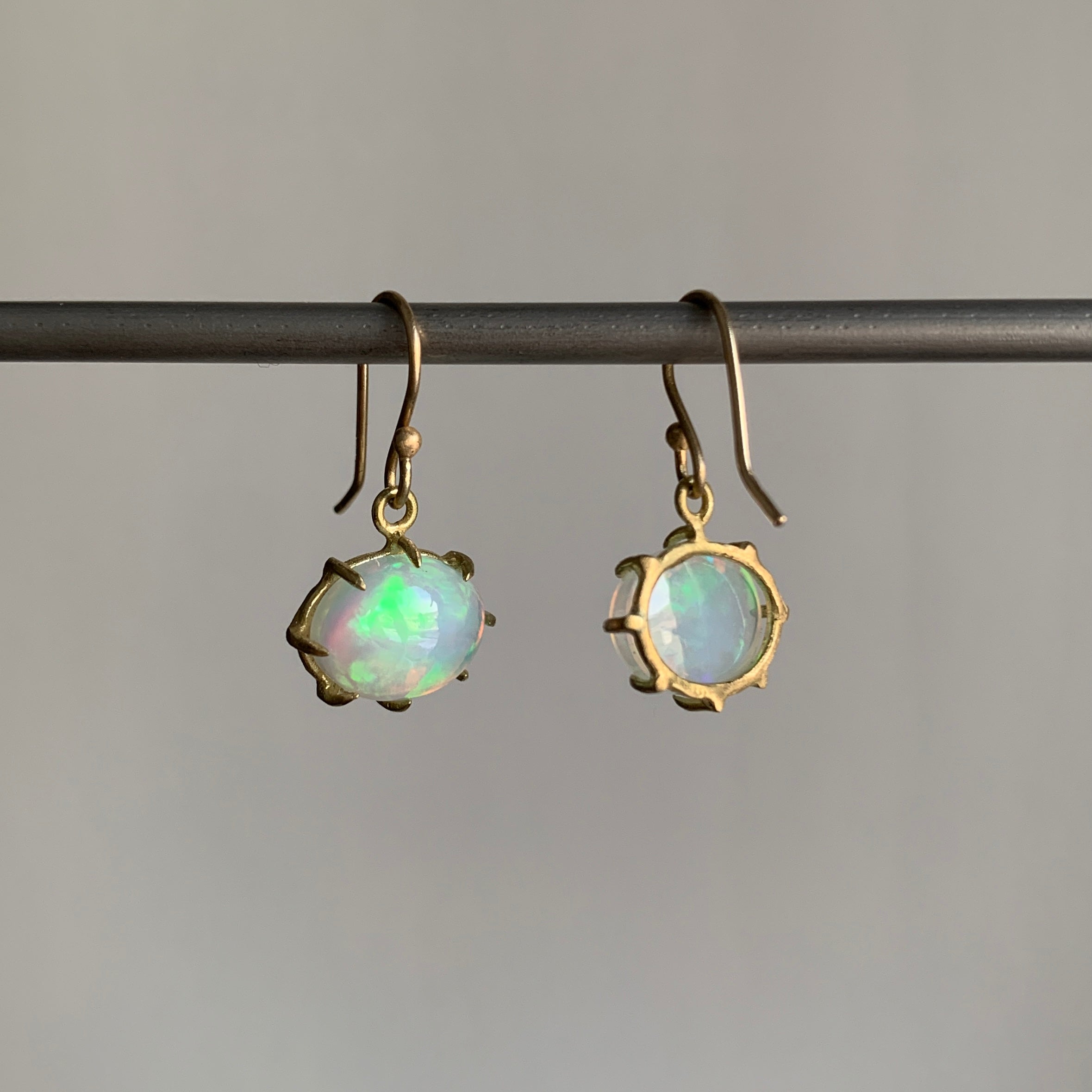 A universe of color flashes with every glance of these potent Ethiopian opal earrings.
