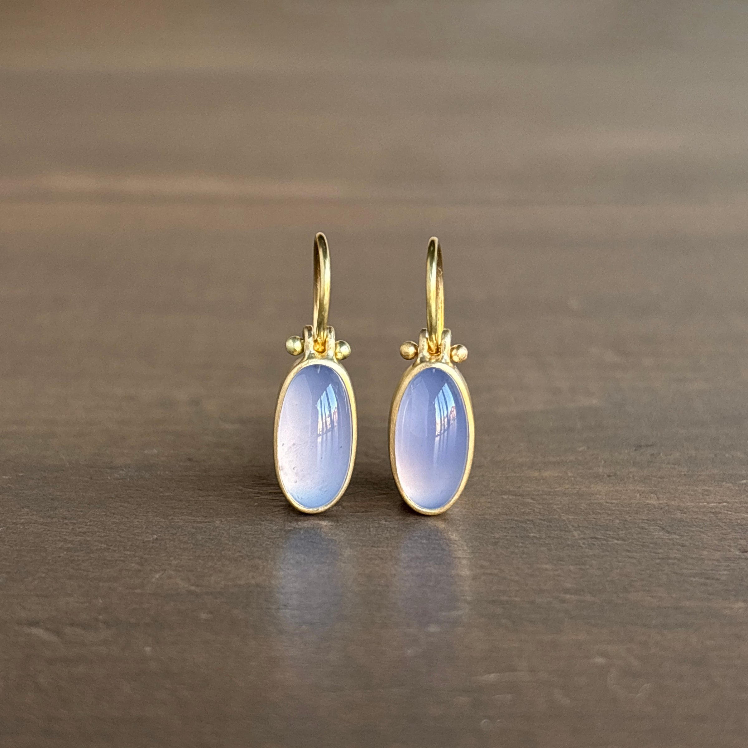 Elongated Oval Blue Chalcedony Cabochon Earrings – Meeka Fine Jewelry