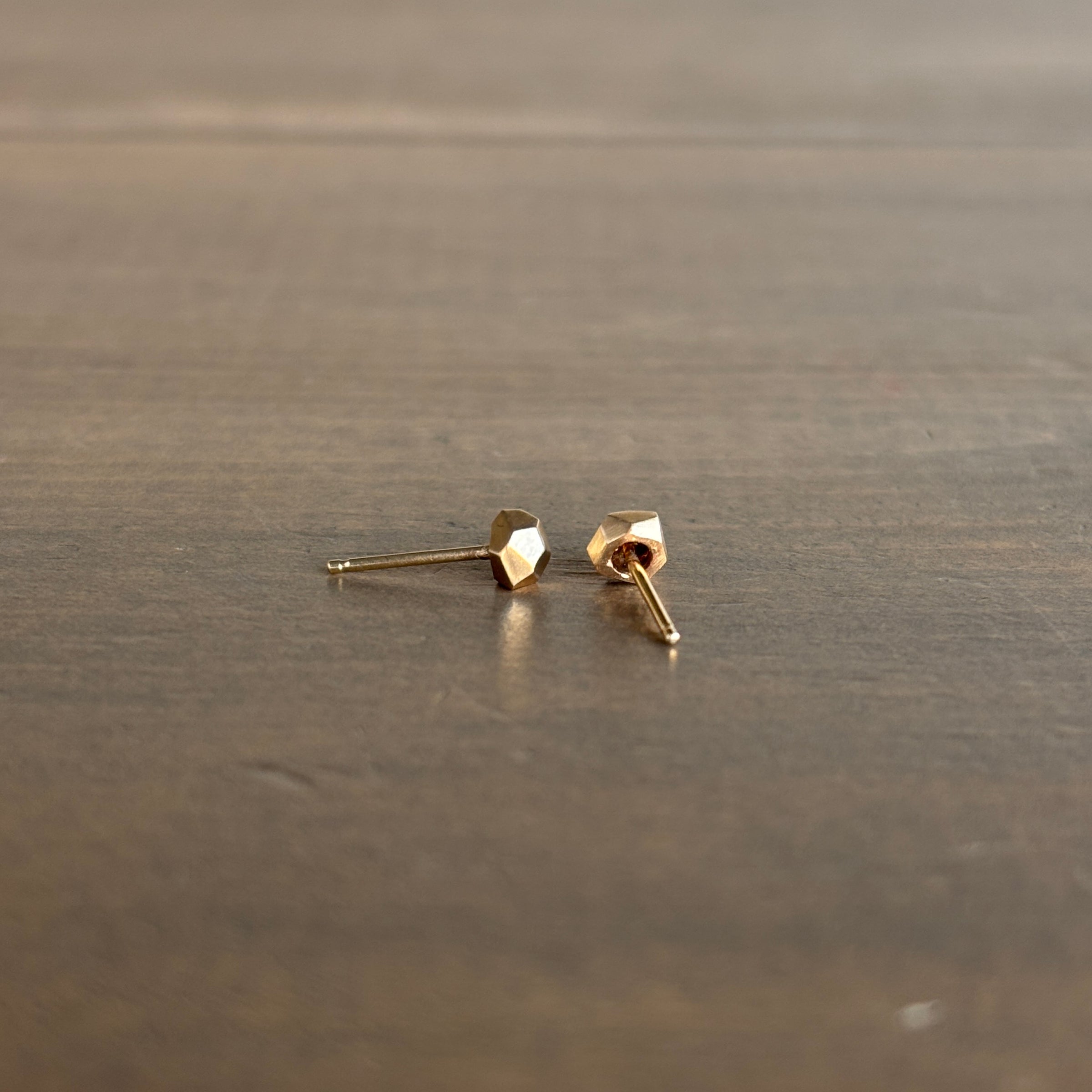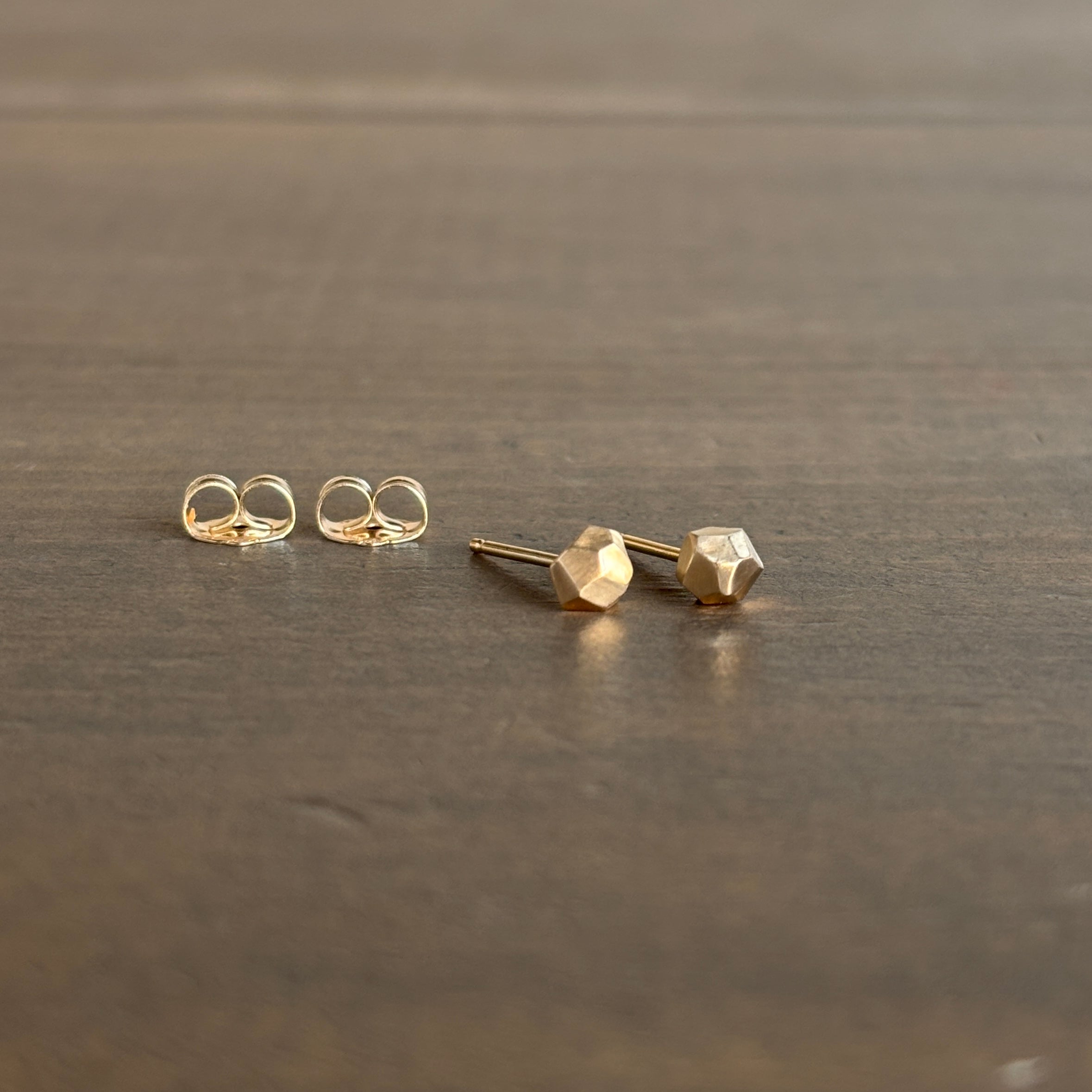The intentionally rugged surface of these sweet studs play with light and shadow and gleam beautifully on the lobe.