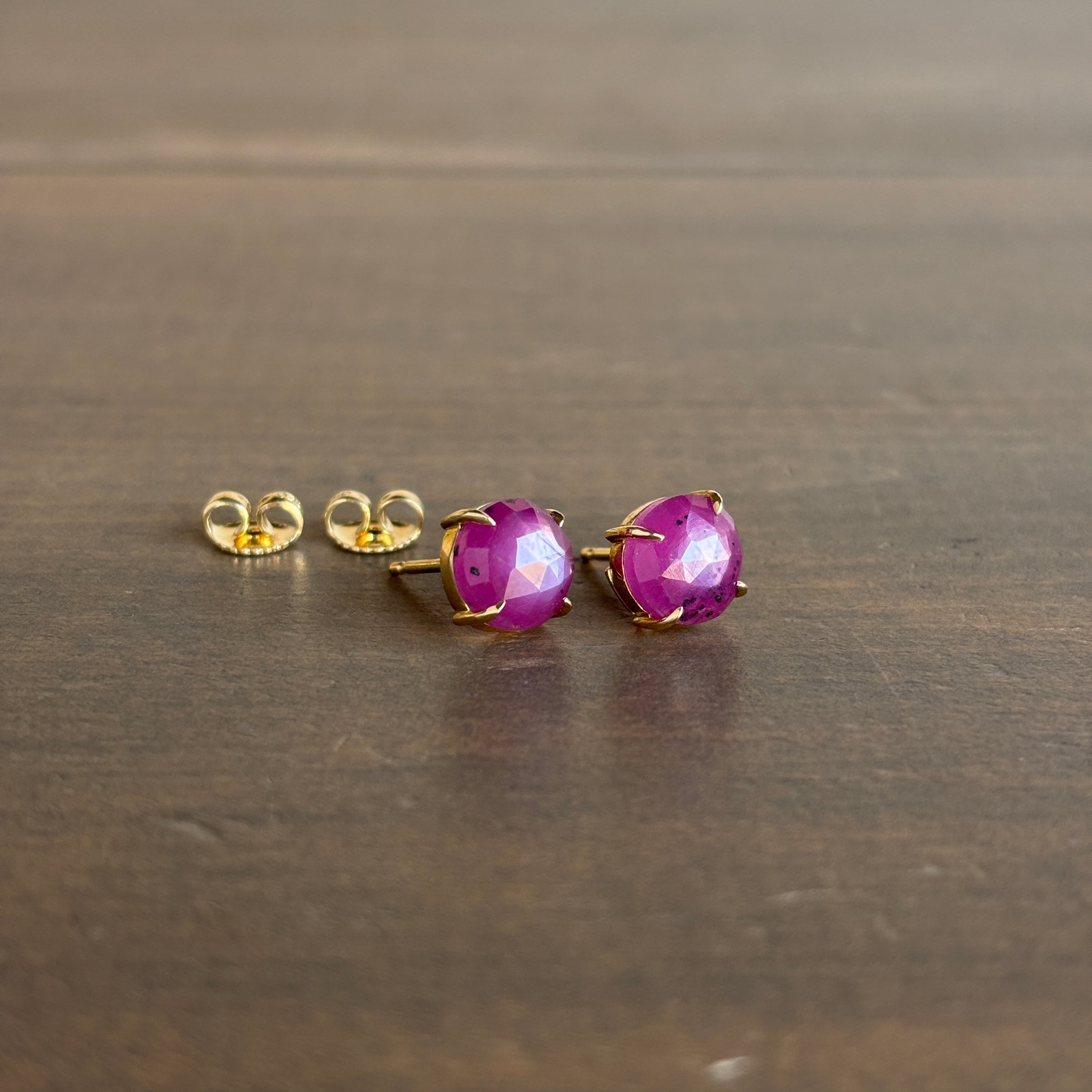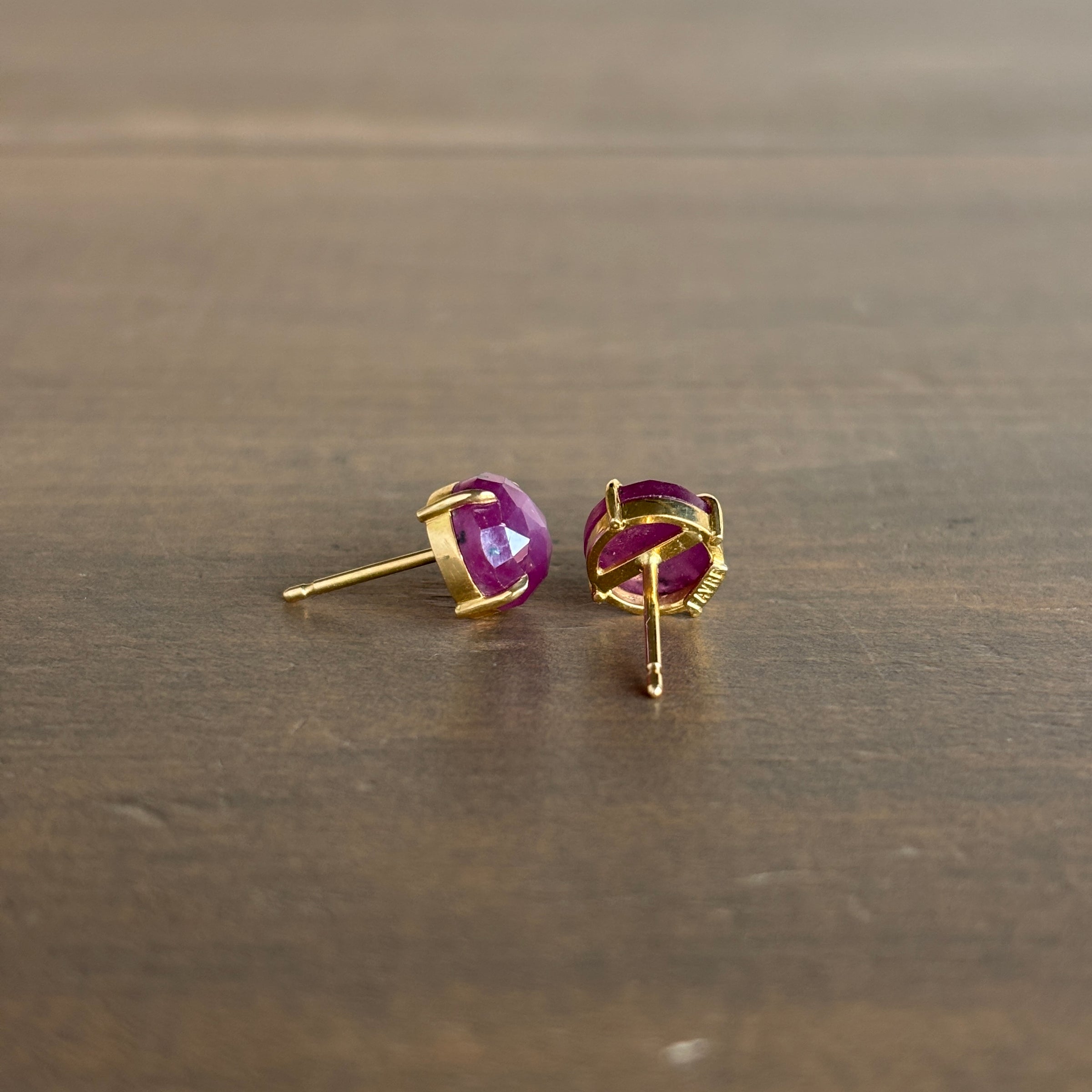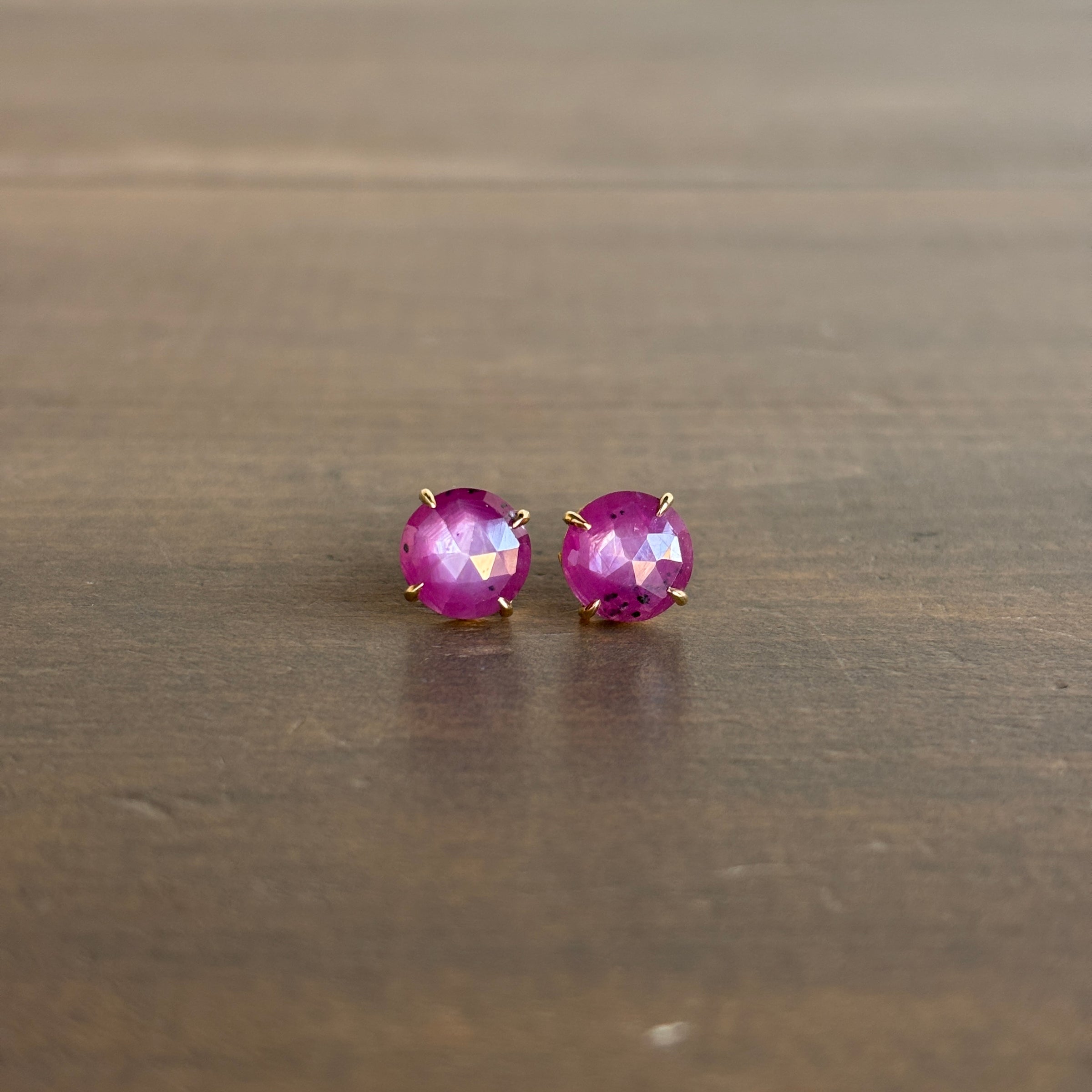 Natural color rubies sparkle with rose cut facets in this captivating pair.