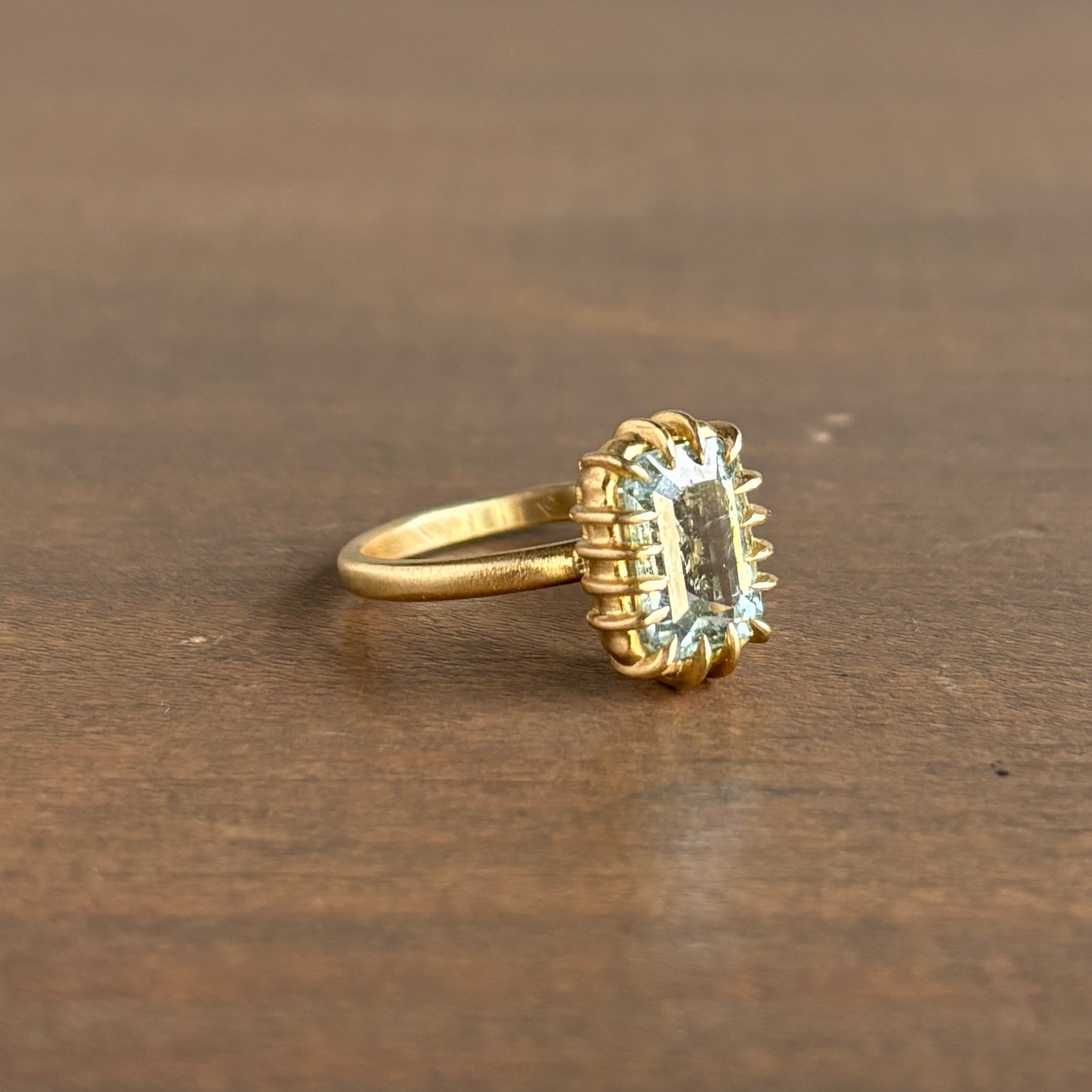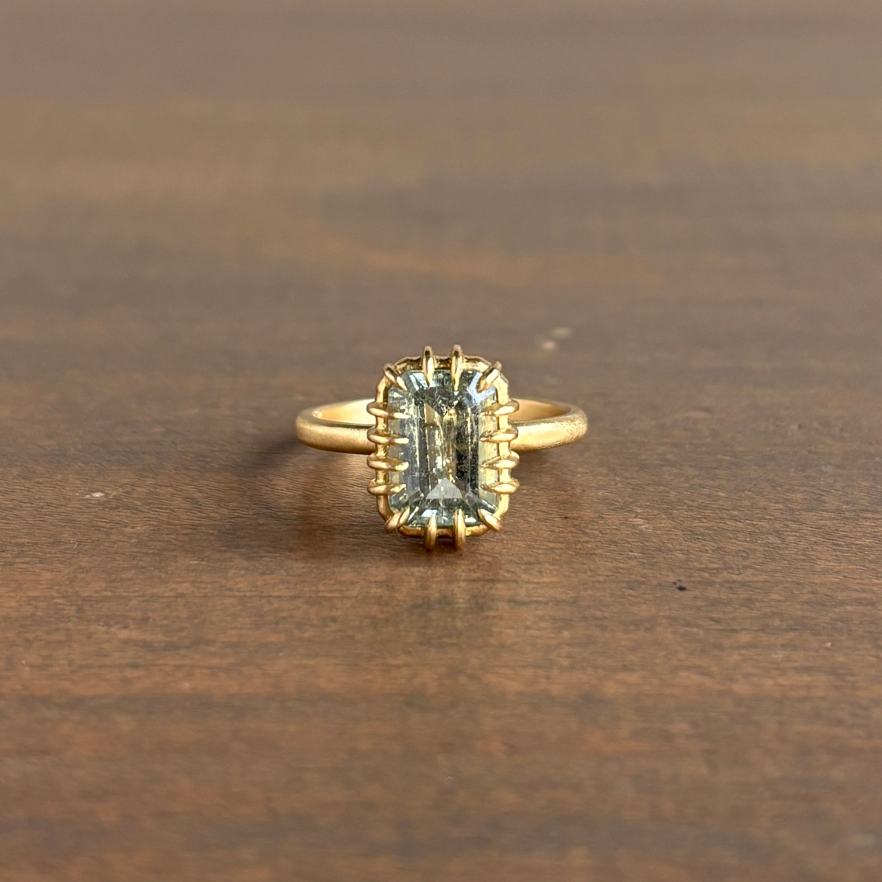 Spiked prongs surround a mirror-like tourmaline in this sensational ring.