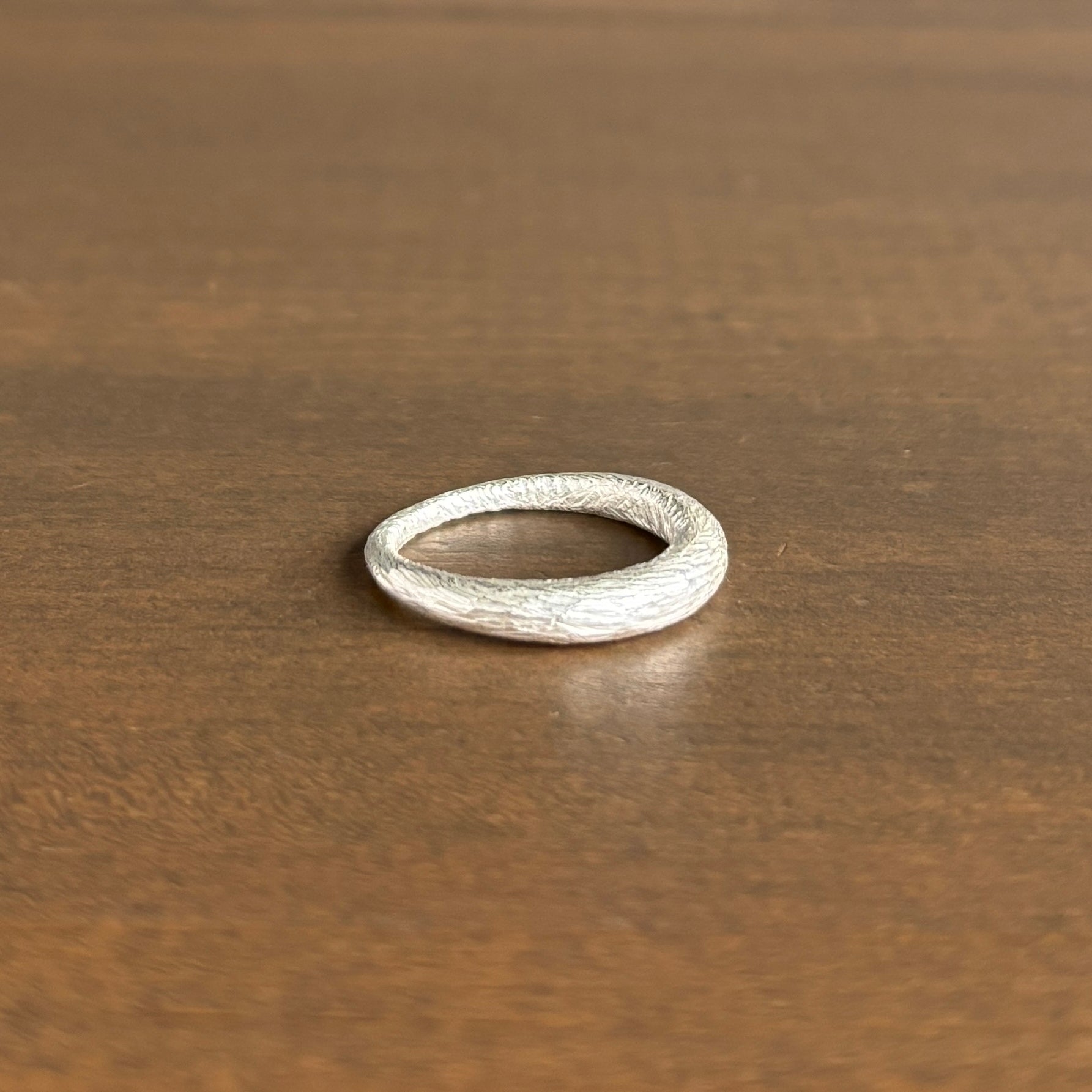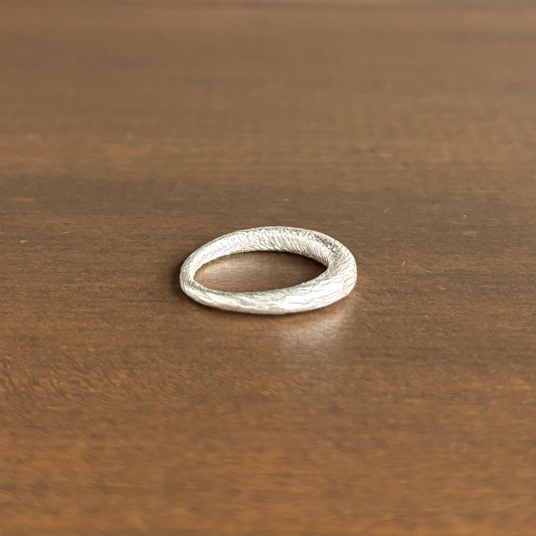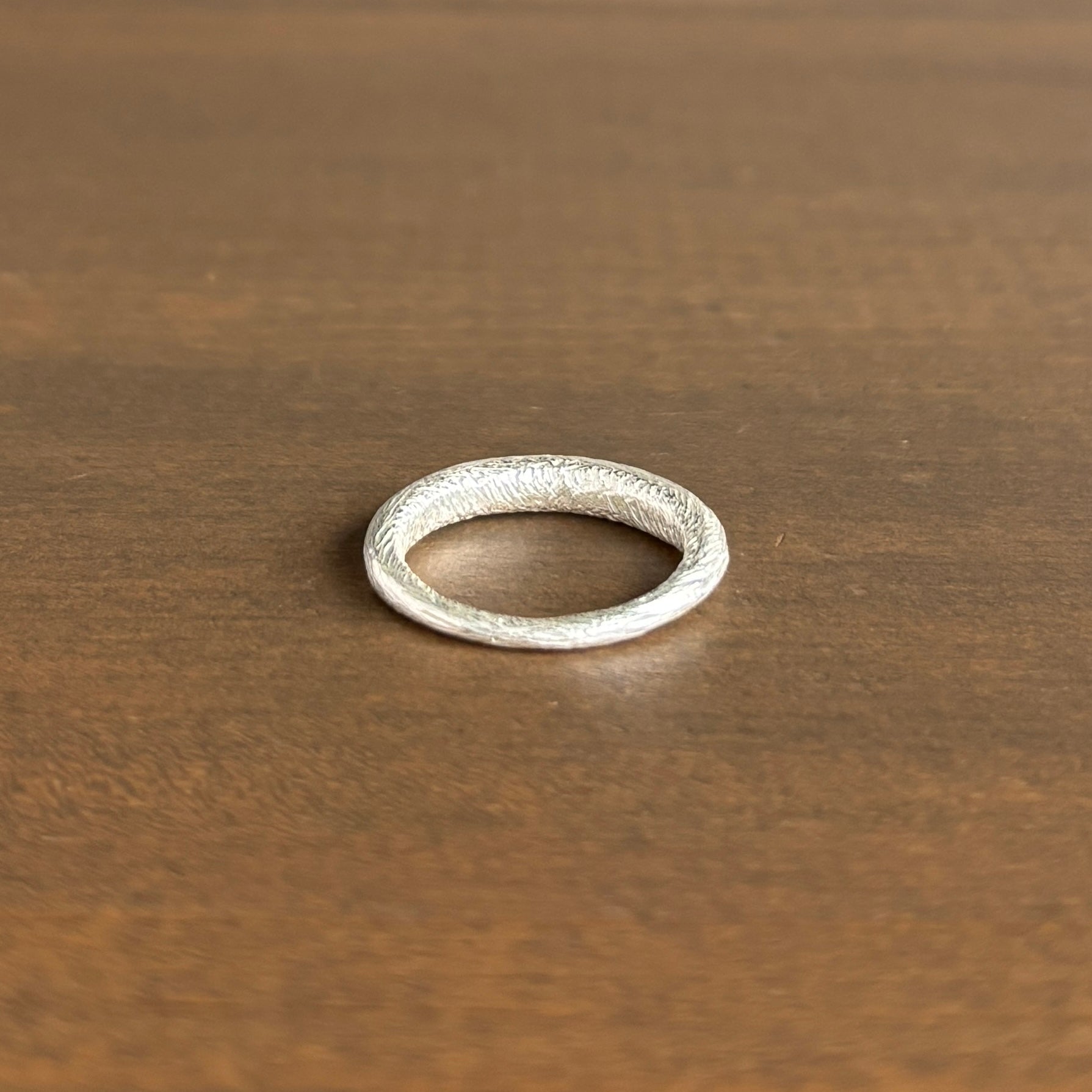 This hewn silver band is a wonderful stacking piece or can be featured solo on the finger for a touch of lightness.