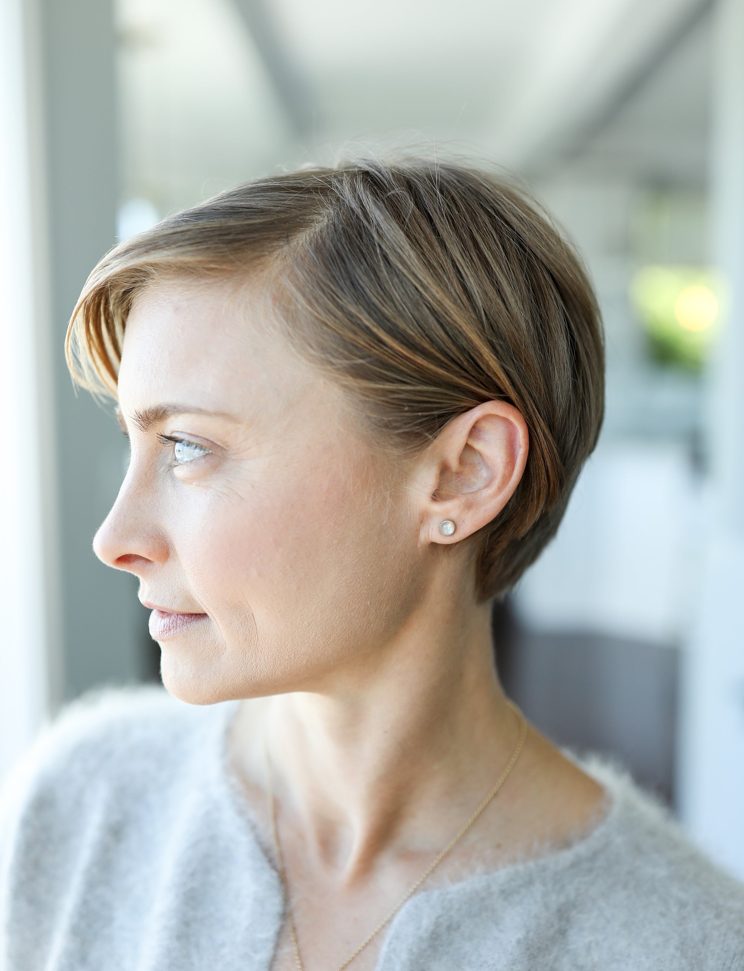 Pale Grey Diamond Cabochon Studs