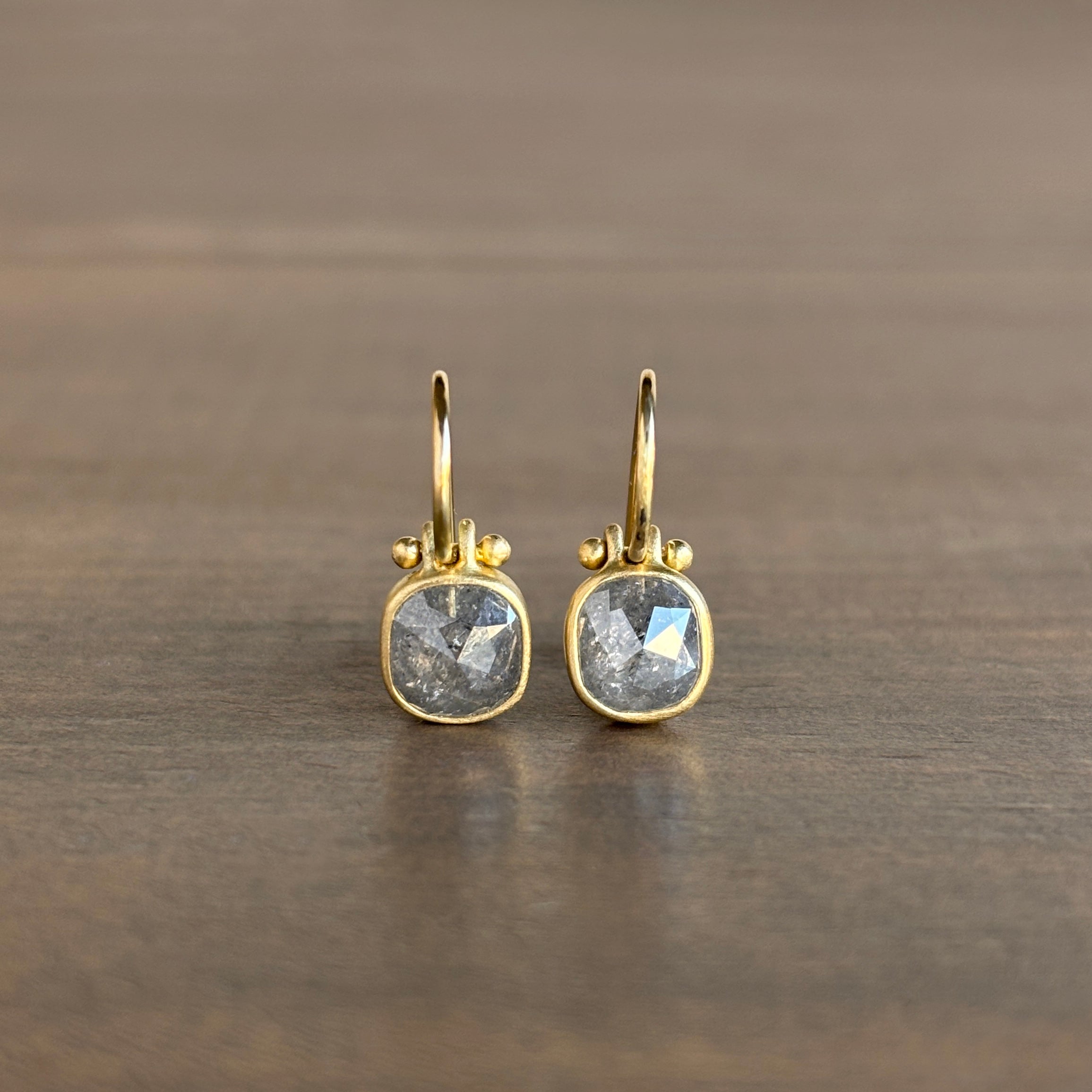 Grey Rose Cut Diamond Cushion Earrings with Clasps