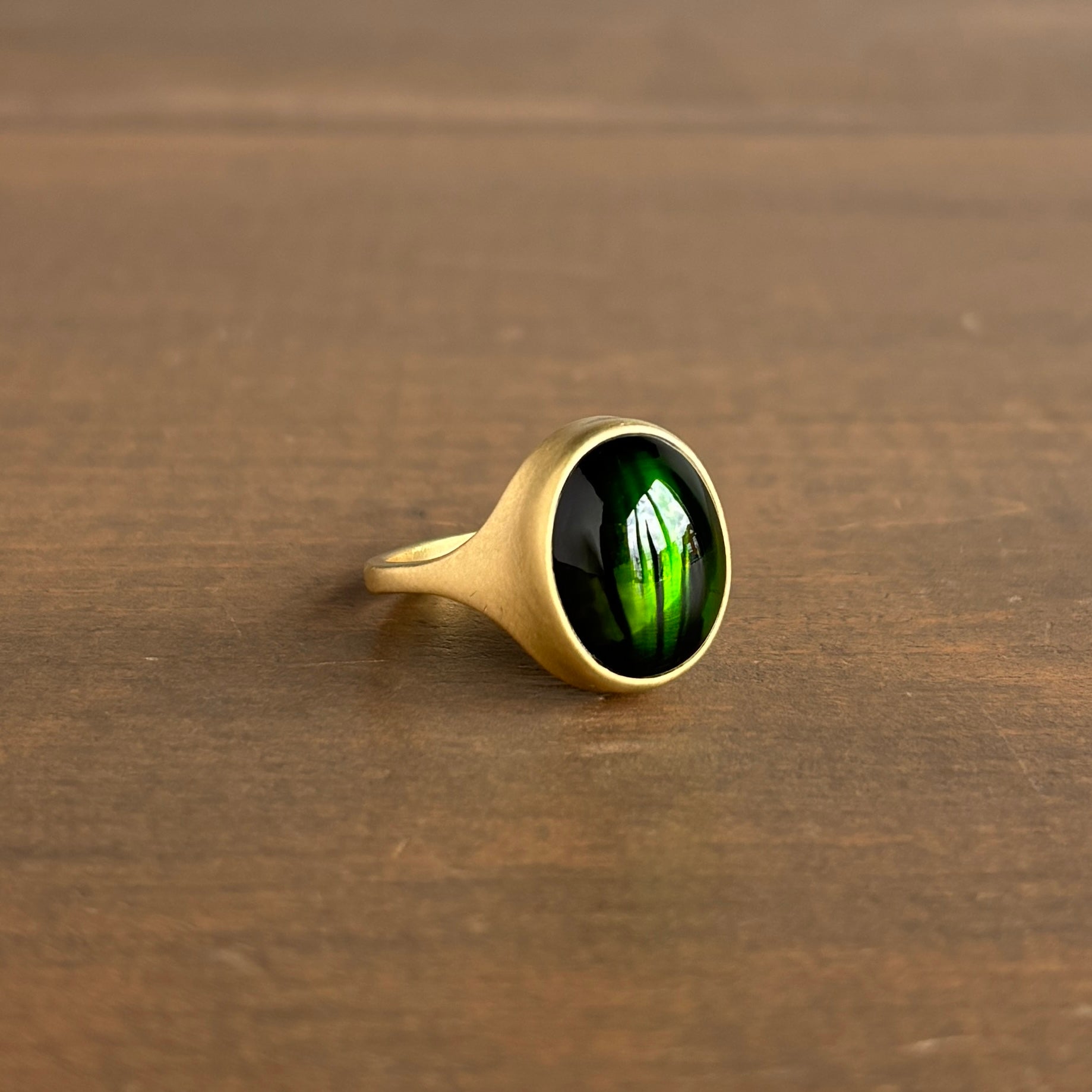 Oval Green Tourmaline Cabochon Cast Ring