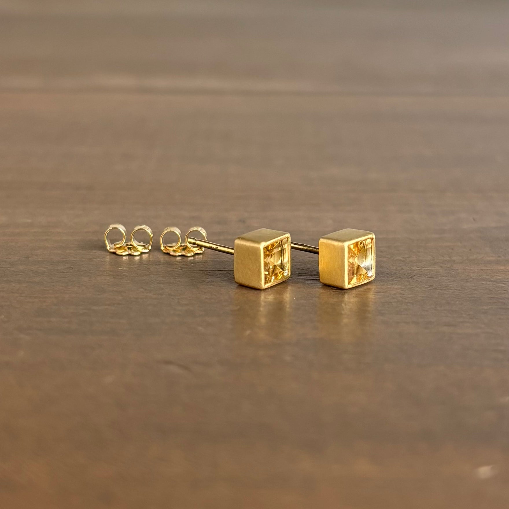 A sunshine-y twinkle emanates from this gorgeous citrine pair, squarely faceted and wrapped in gold.