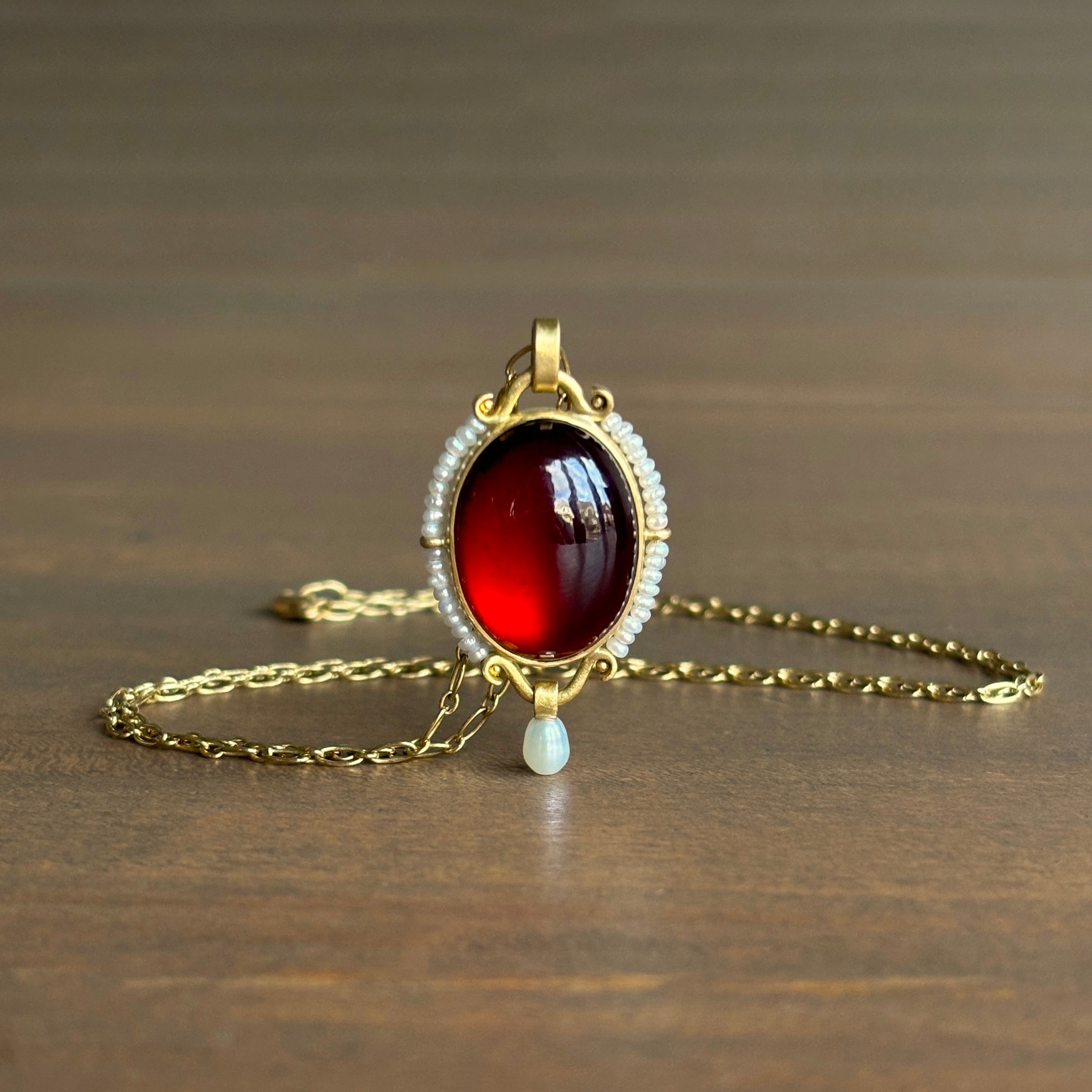 Hessonite Garnet & Pearl Pendant – Meeka Fine Jewelry