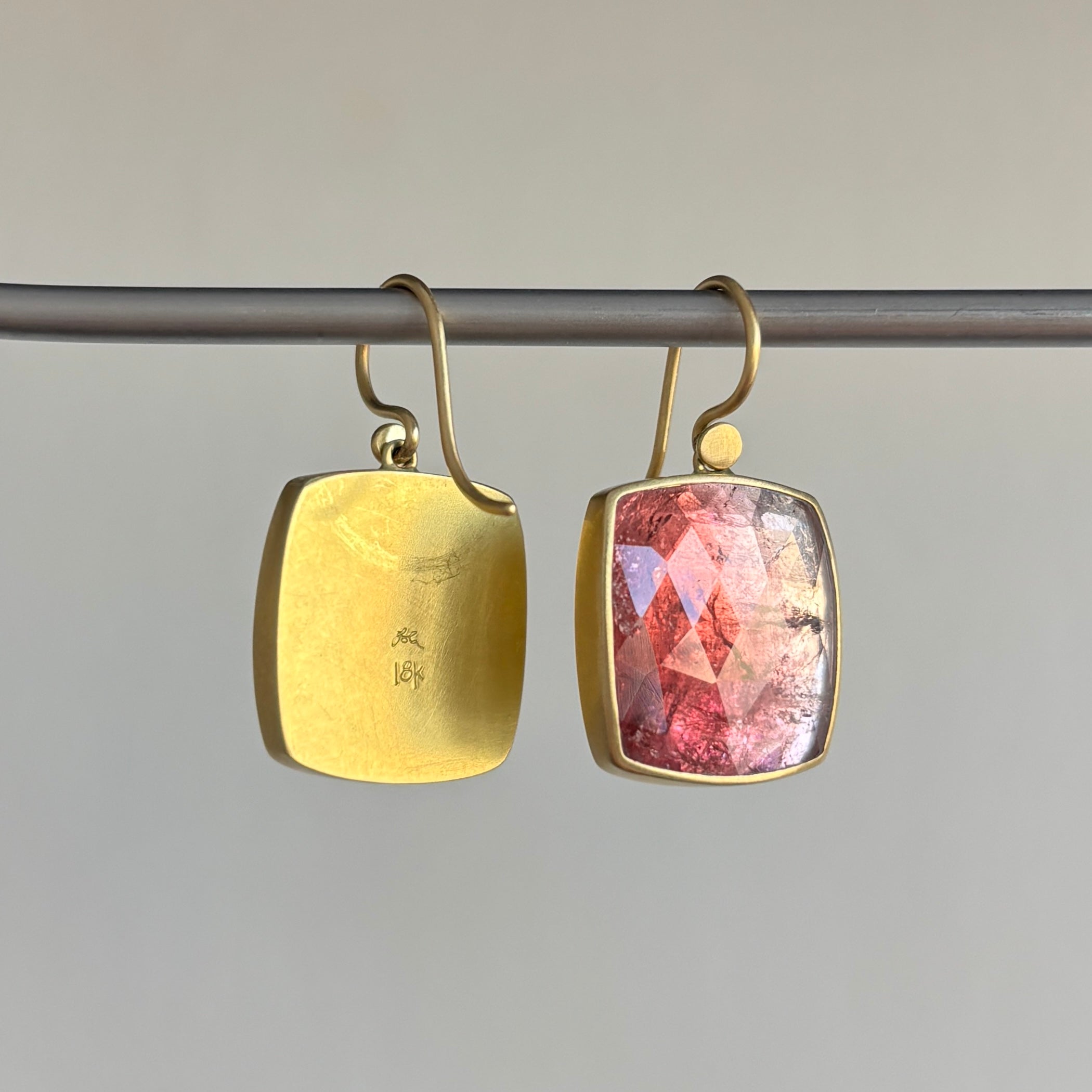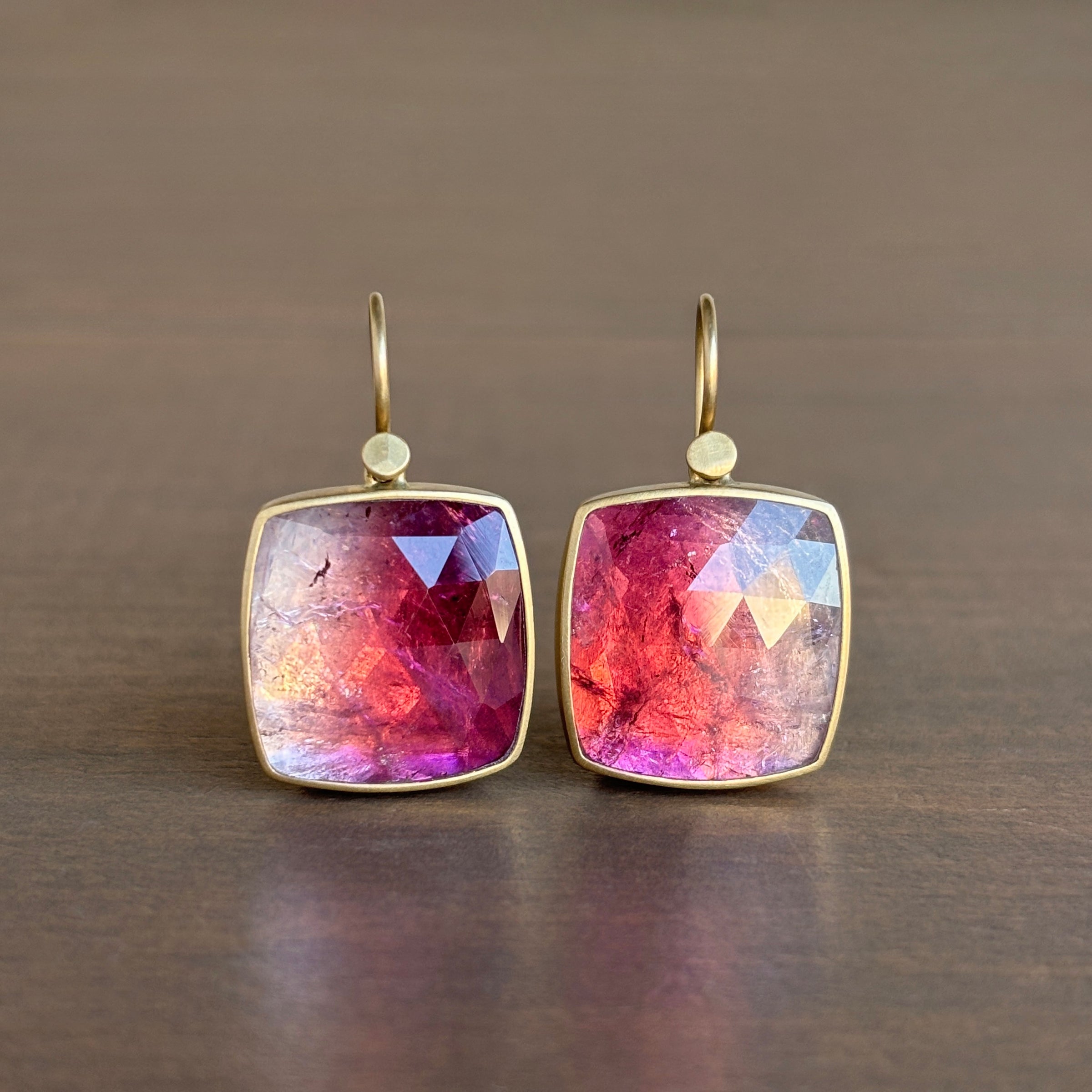 Pink Ombré Tourmaline Cushion Earrings