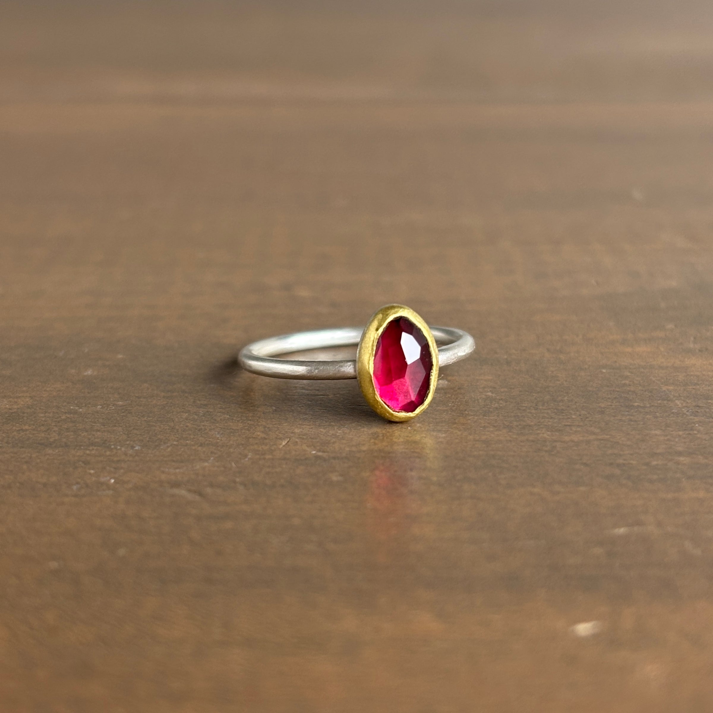 A twinkling flurry of facets sits atop deep magenta hues in this rhodolite garnet beauty.