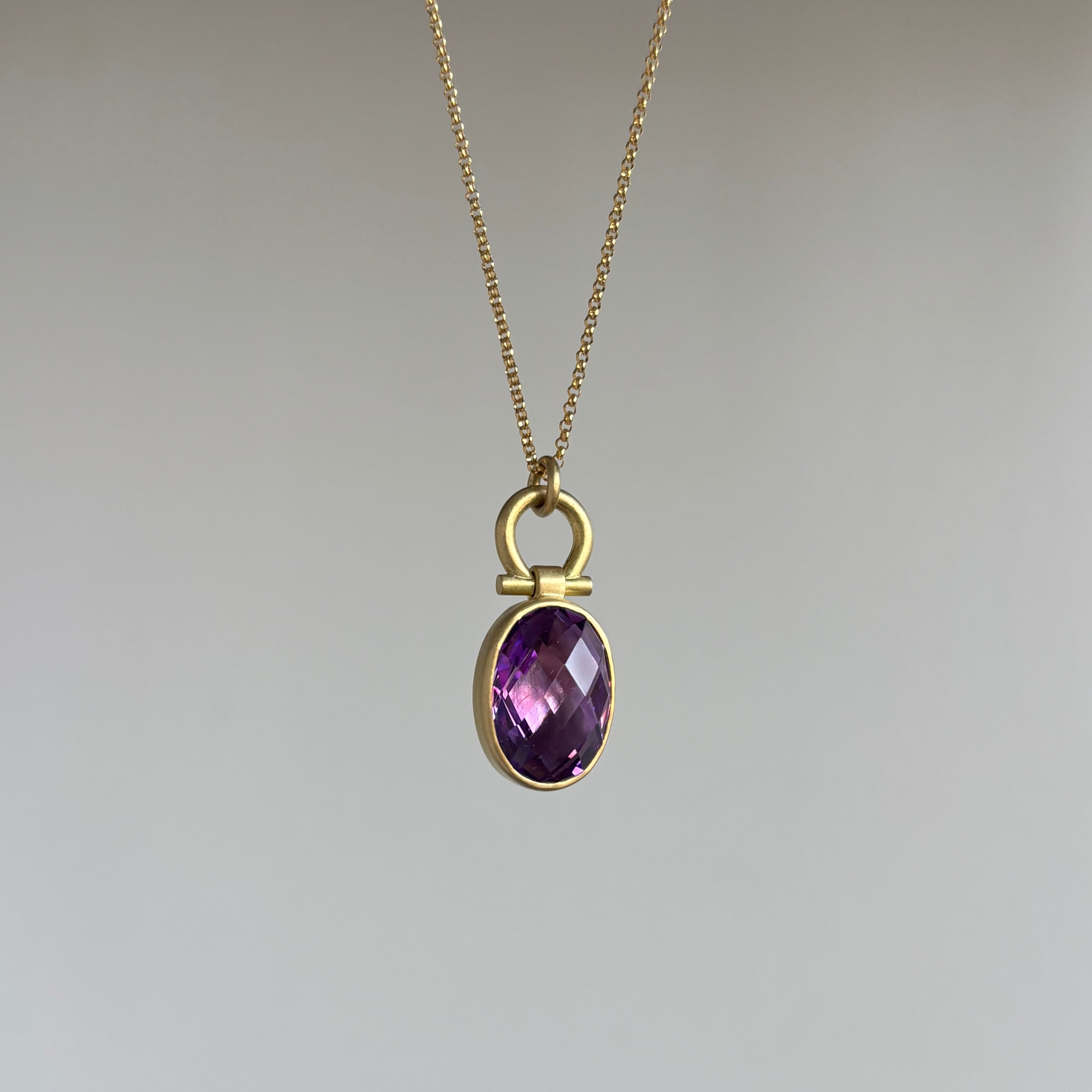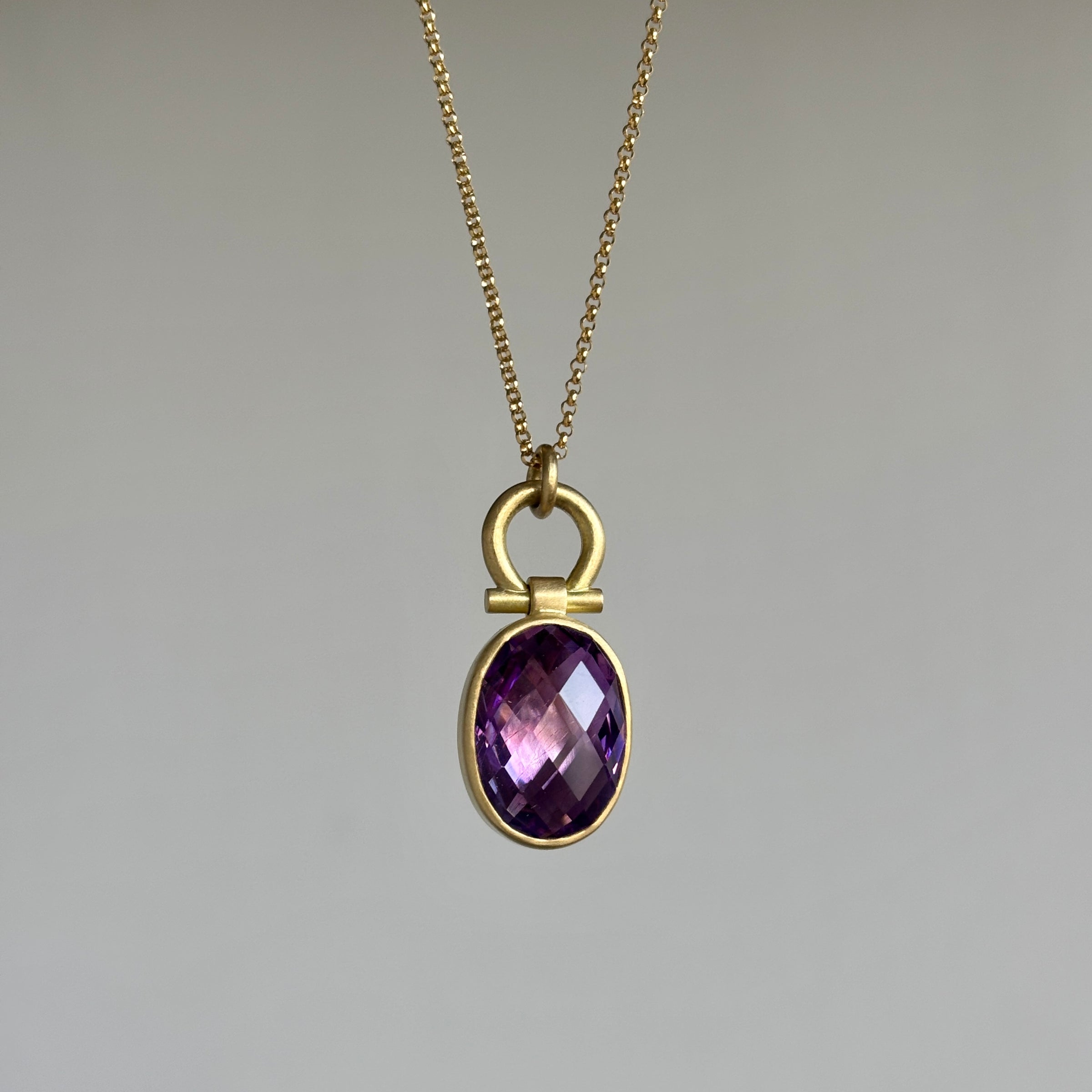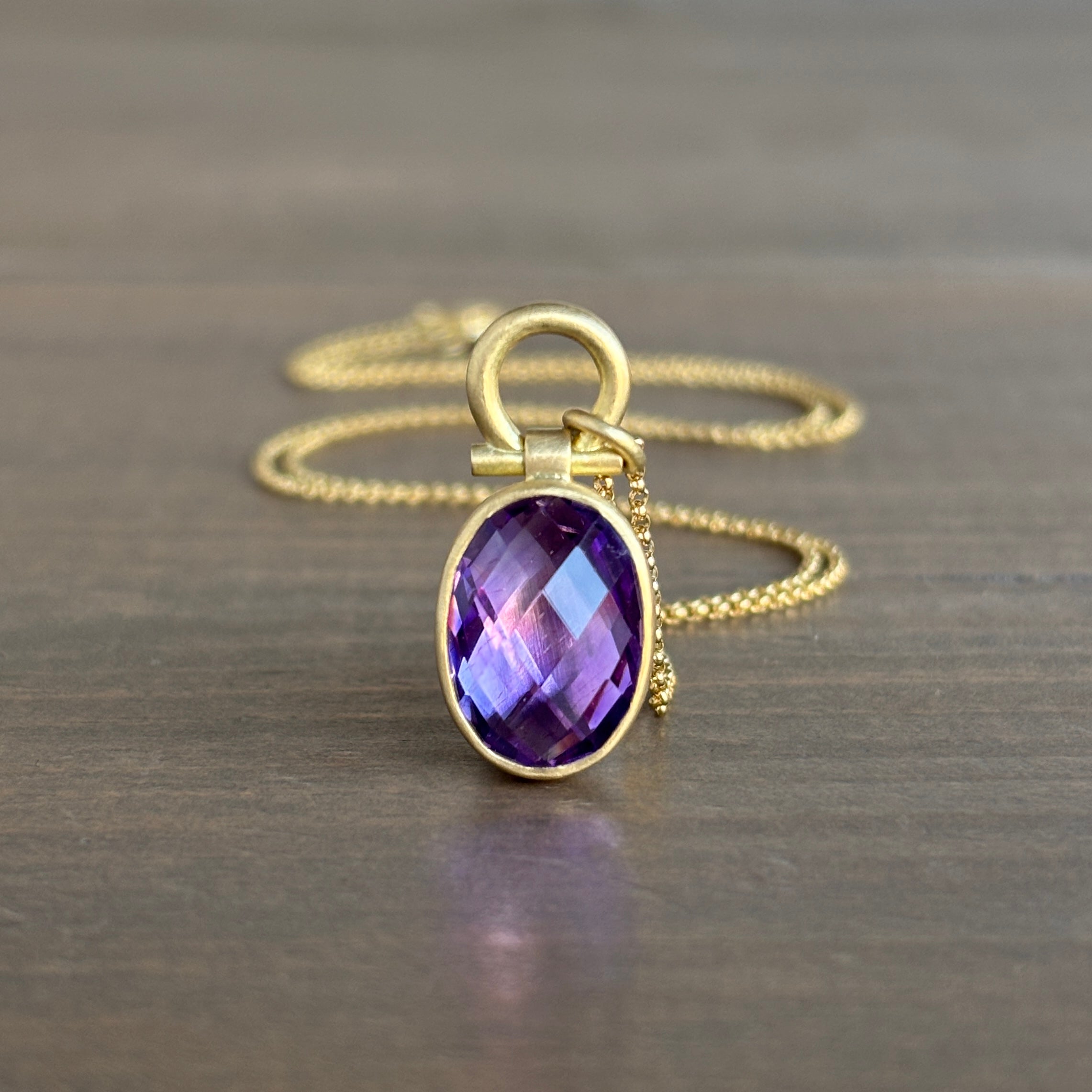 Twinkling peaks of facets converge upon an amethyst horizon in this wondrous purple pendant.