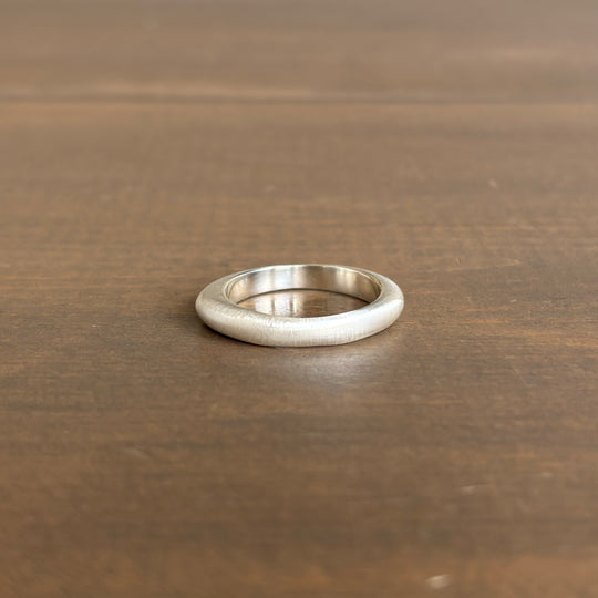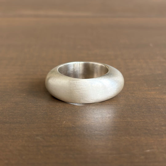 Drawing on architectural inspiration, this silver pendant with a sweeping arch sits beautifully and effortlessly on the body.
