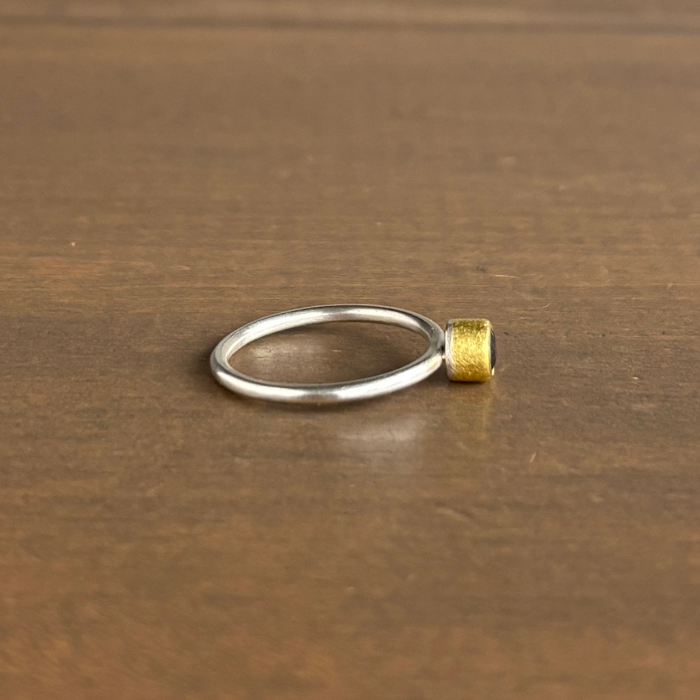 With a lifelong intrigue of gemstones and an interest in mathematics, Sam was lured into the metal arts. Learning to manipulate metal and work with stones has led his work into what it is today. He finds not only the amazing colors gems produce, but also their raw crystal structures, intriguing. The use of this and different color combinations of metal alloys lets him explore designs in shape as well as depths along another plane of vision.