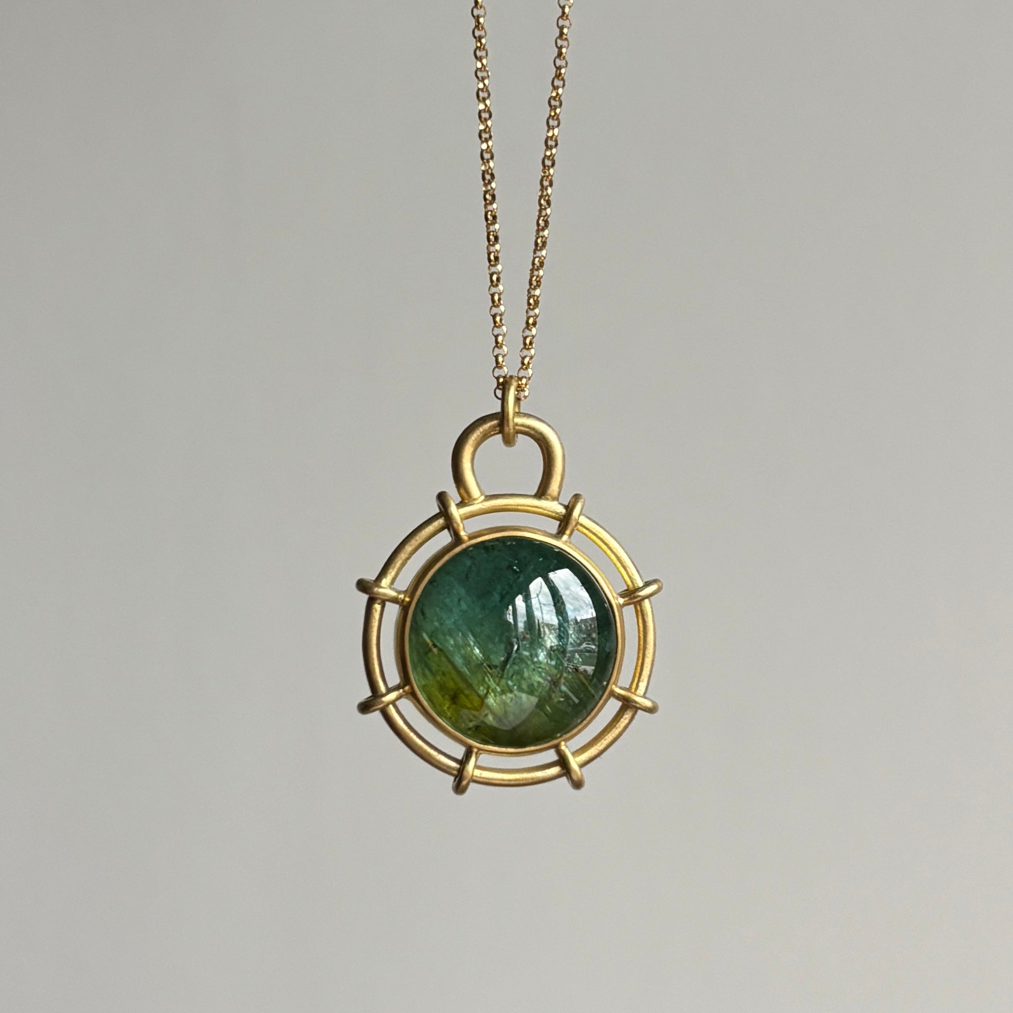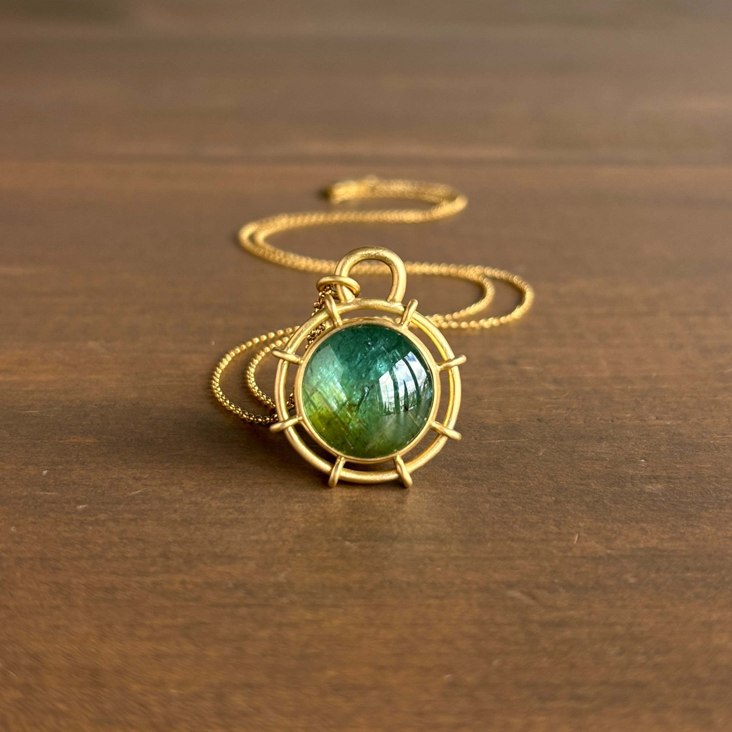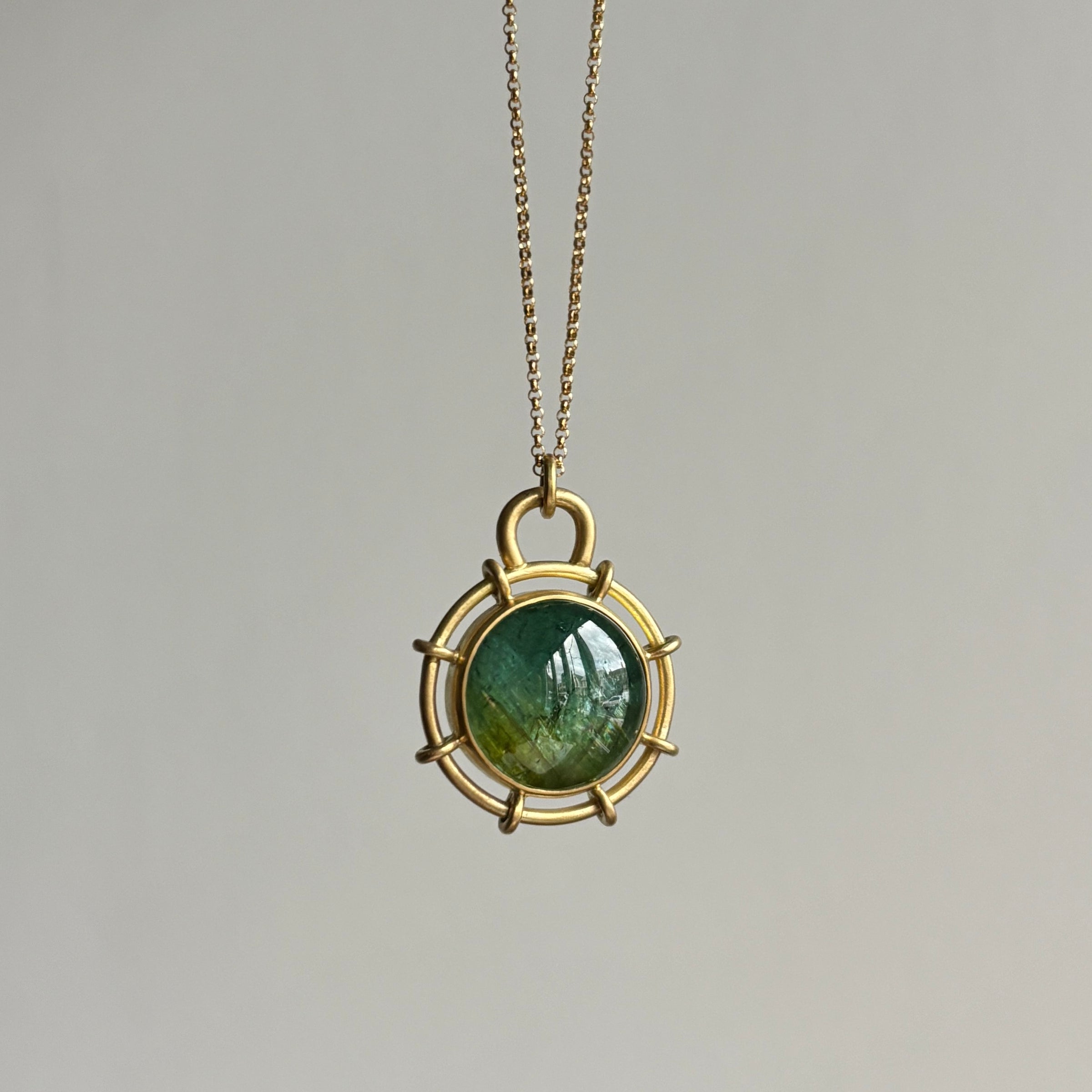 Round Ombré Green Tourmaline Helm Pendant